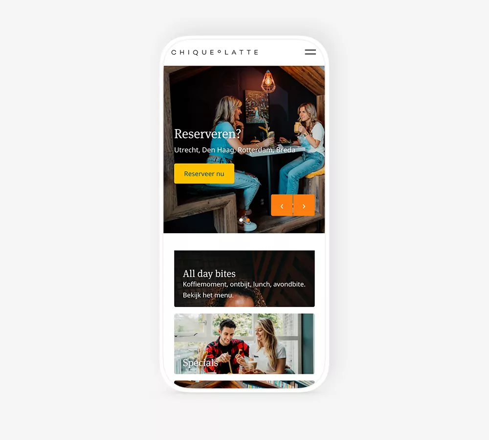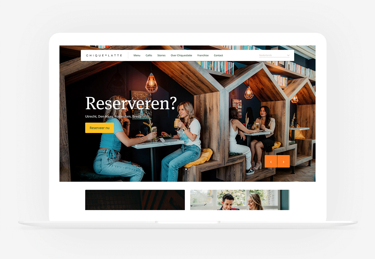 Uiteindelijk hebben we een oplossing bedacht bestaande uit meerdere maatwerk websites. Als je naar chiqueolatte.com gaat kom je terecht op de algemene website vanwaar je weer door kan naar bijvoorbeeld de website van Nederland. Zo heeft elk land zijn eigen website met de eigen producten en cafés. Zie het resultaat!